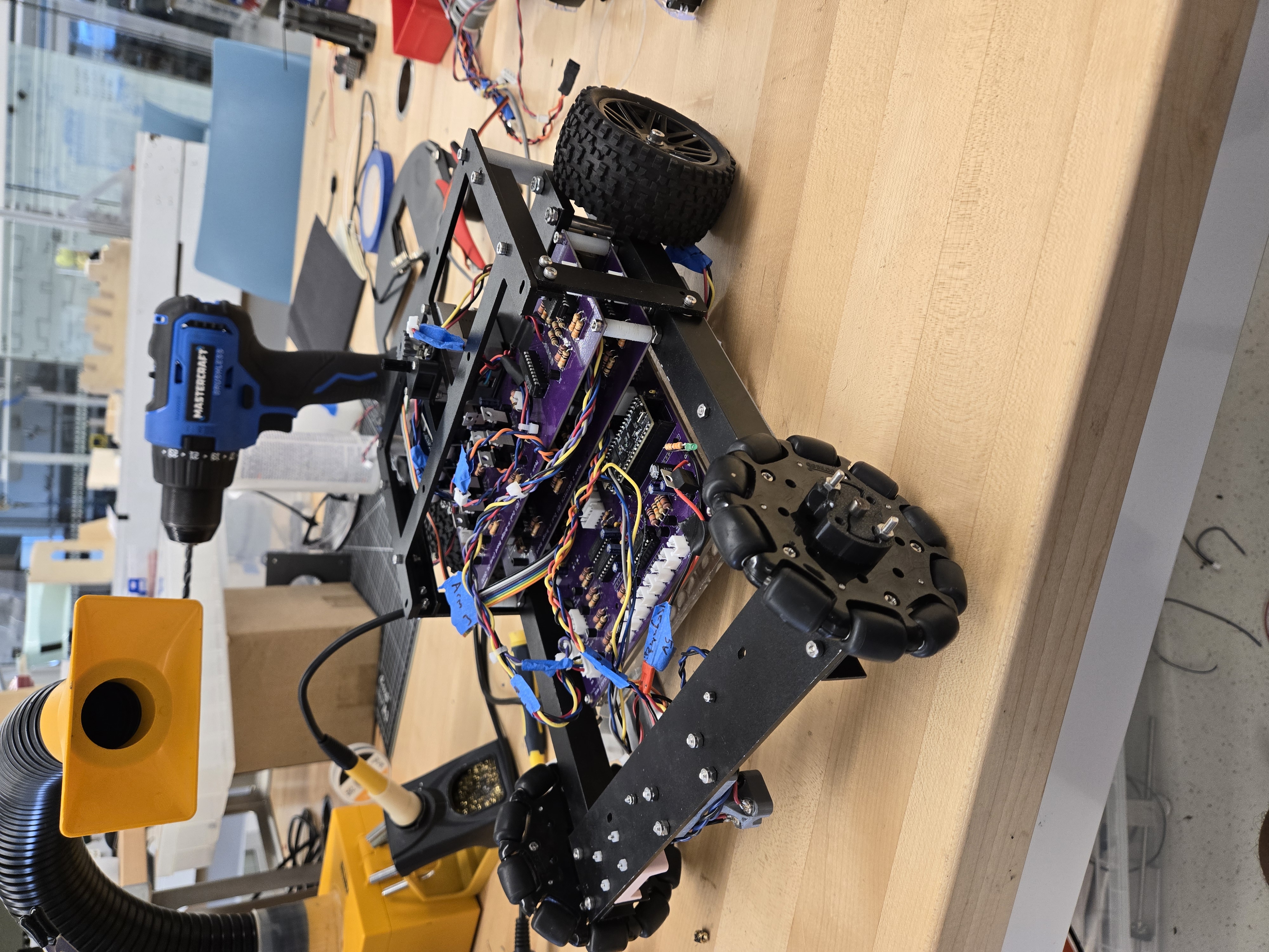 I was mainly involved in the electrical and software design, though I also contributed somewhat to the mechanical design; in general, me and my teammates would run ideas past each other quite often, and as a result we all contributed in some fashion to many aspects of the robot!